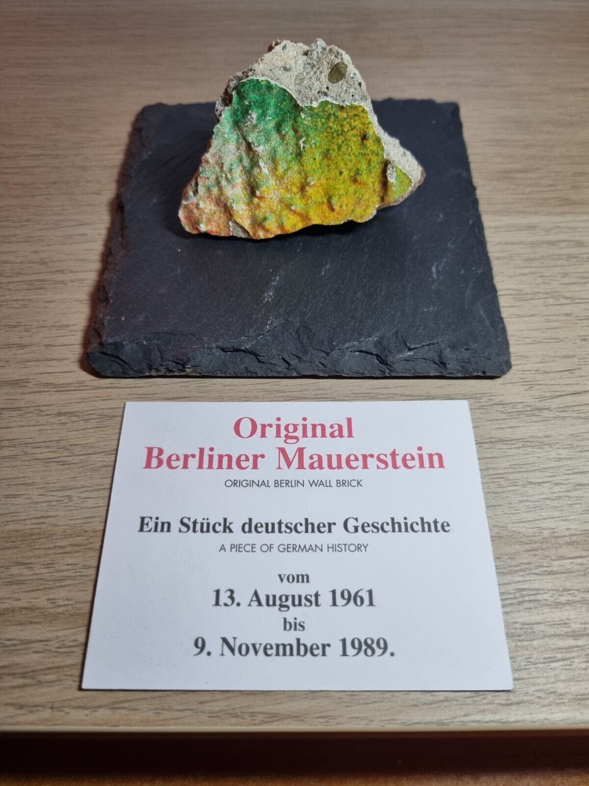 Original Medium 6 cm Piece of the BERLIN WALL on Slate Display + Certificate